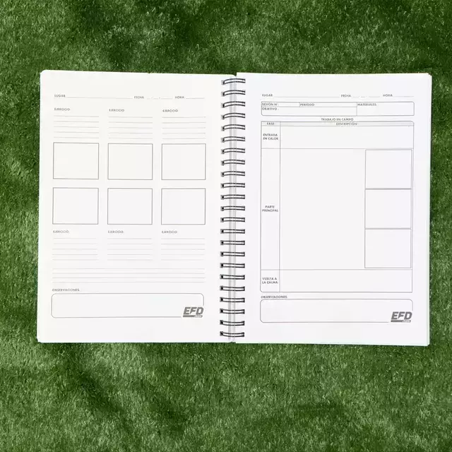 Optimiza cada sesión con nuestro Cuaderno Deportivo, especialmente diseñado para entrenadores y jugadores que buscan mejorar su rendimiento y estrategia en el deporte.