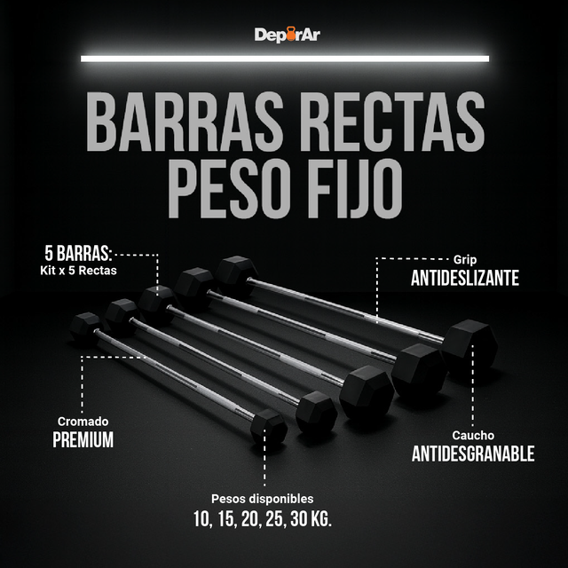 🔥 Kit de 5 Barras de Peso Fijo – Rectas