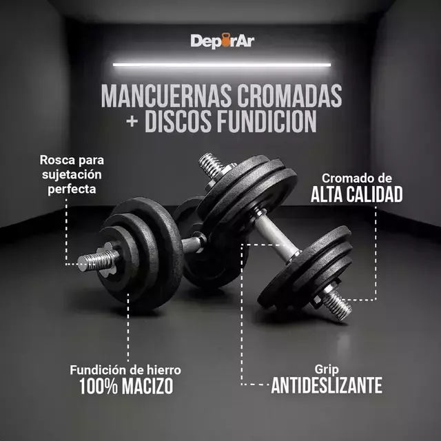 Mancuernas Cromadas a Rosca + 35 Kg Discos de Fundición