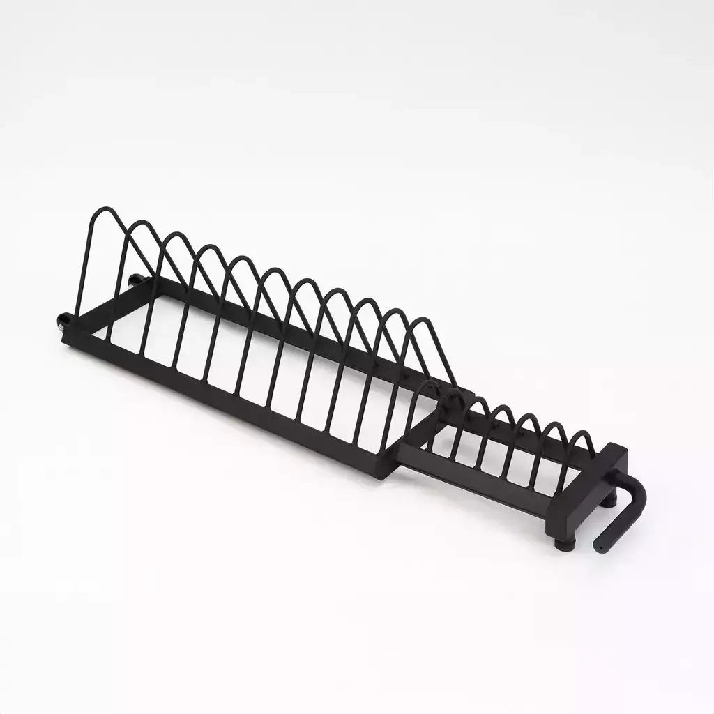 Mantené tu espacio de entrenamiento siempre ordenado y profesional con este porta discos horizontal de hierro reforzado, diseñado para soportar el uso intensivo en gimnasios y centros de entrenamiento.
